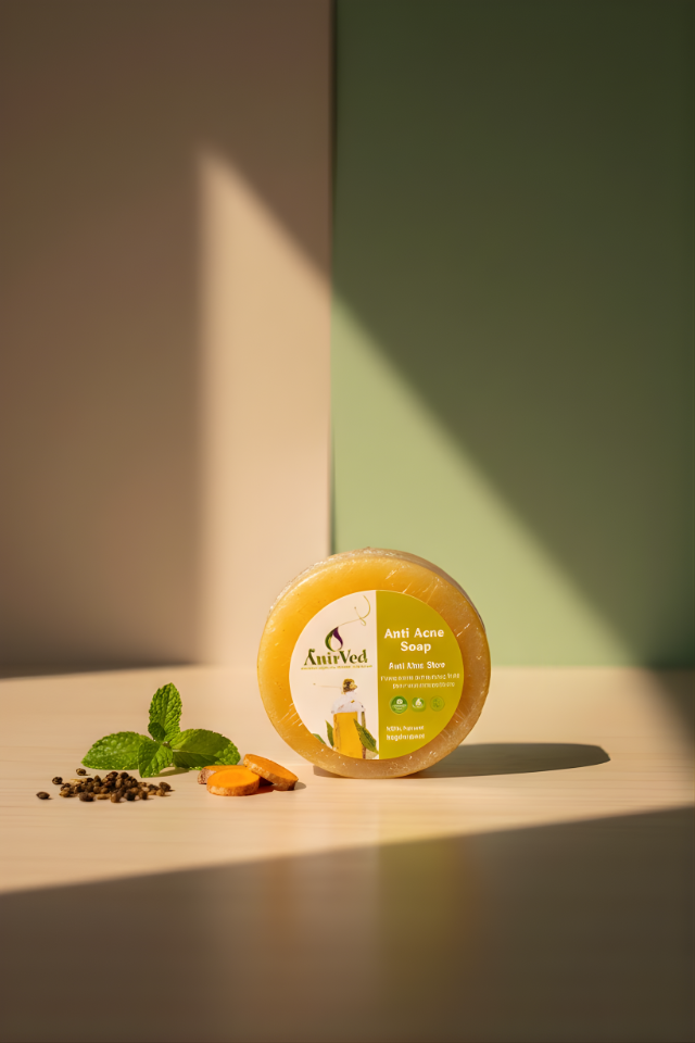 AnirVed Anti Acne Haldi Chandan Soap – Natural Acne Control & Clear Skin (Pack of 4 | Buy 3 Get 1 Free)