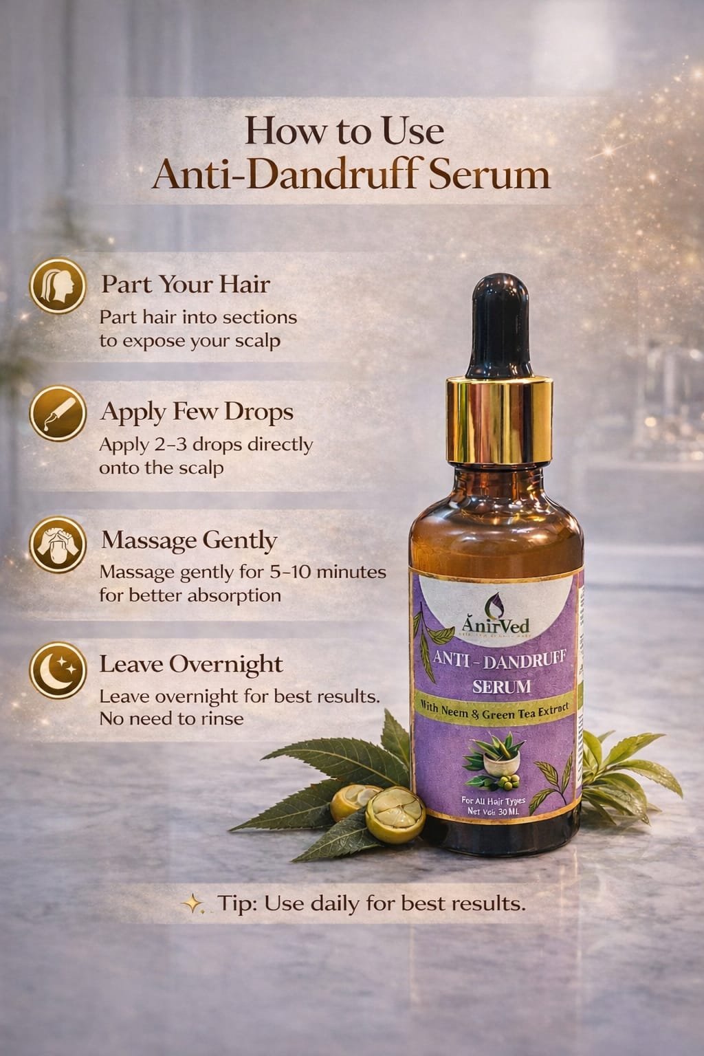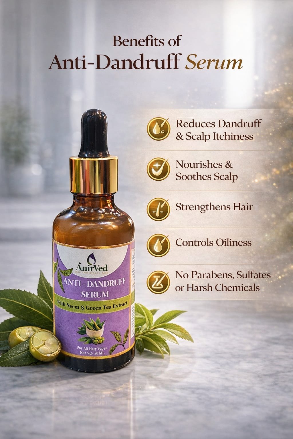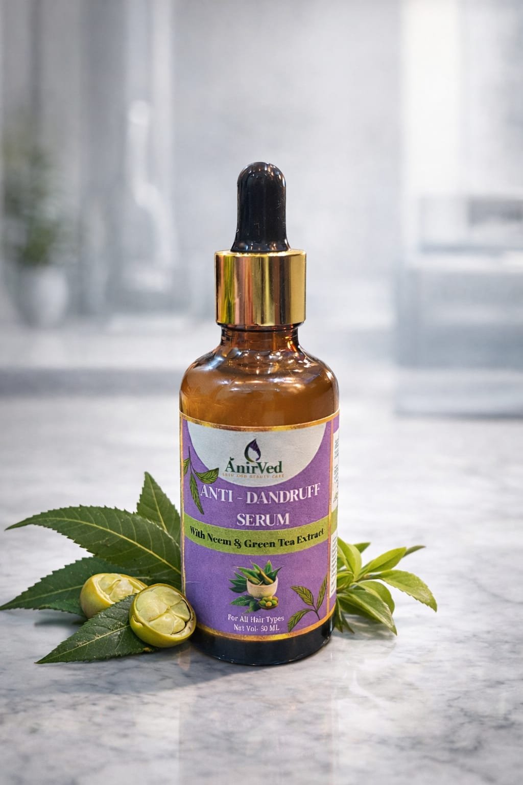 AnirVed Anti-Dandruff Serum with Neem and Green Tea (50ml) – Natural Scalp Treatment
